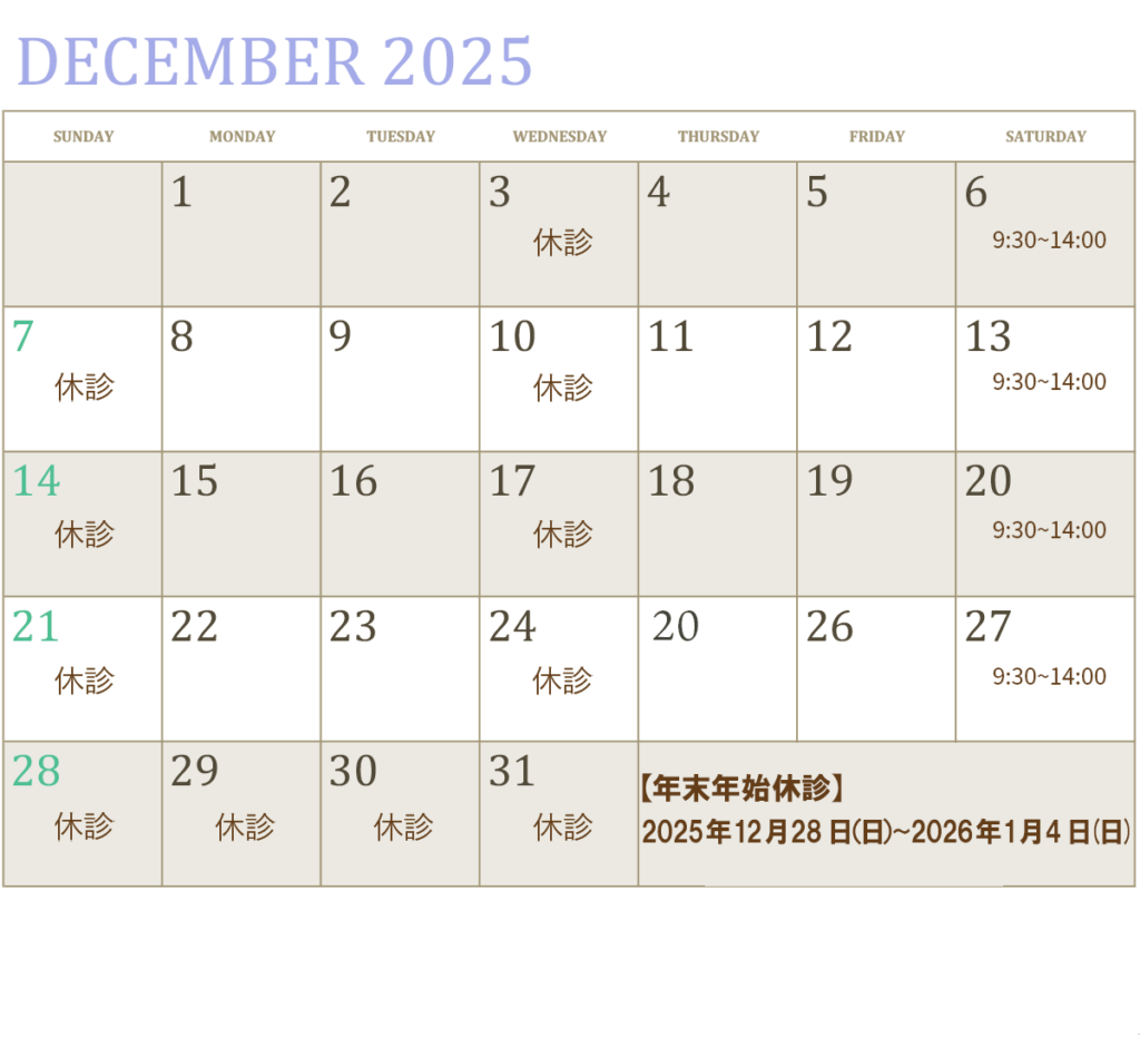 【年末年始休診のお知らせ】2025年12月28日~2026年1月4日休診