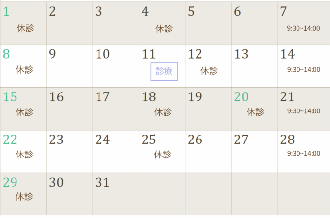 2025年3月は、次の通り休診いたします。 毎週日曜日、水曜日、20日(木・祝)